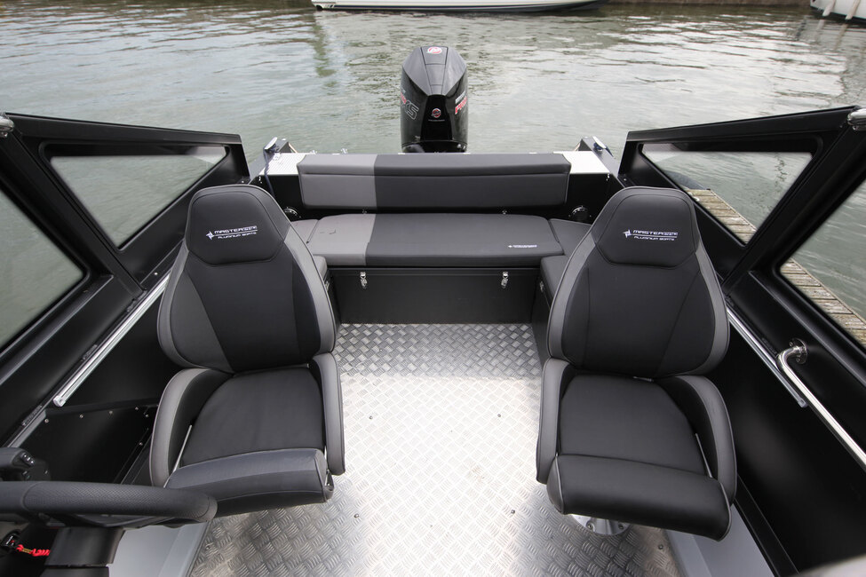 Edessä on selkä menosuuntaan istuttava tuhto ja molemmilla puolilla sivuilla tuulilasin edessä on istumapaikat, joten veneeseen mahtuu hyvin maksimimäärä kahdeksan ihmistä ja lisäksi paljon tavaraa. Master Pro 750 onkin ihanteellinen yhteysvene ja toki tuulilasin työkonemainen design sekä veneen tunnelma sekä tausta viittaavat enemmän työjuhtaan kuin kruisalualukseen. Veneen täyshitsattu 6 millimetrin alumiinirunko mahdollistaa ajamisen jopa kevyessä jääolosuhteessa, joka pidentää innokkaan veneilijän kautta.