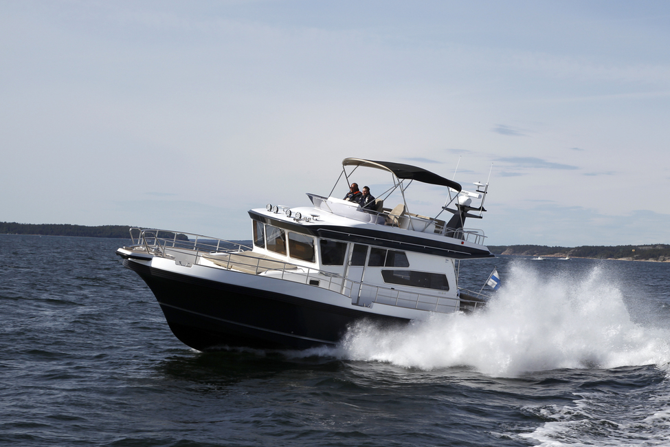 Isoin sarjavalmisteinen suomalainen moottorivene on komea ilmestys. Useimpiin muihin luksusjahteihin verrattuna se on tehty enemmän ajaminen edellä.