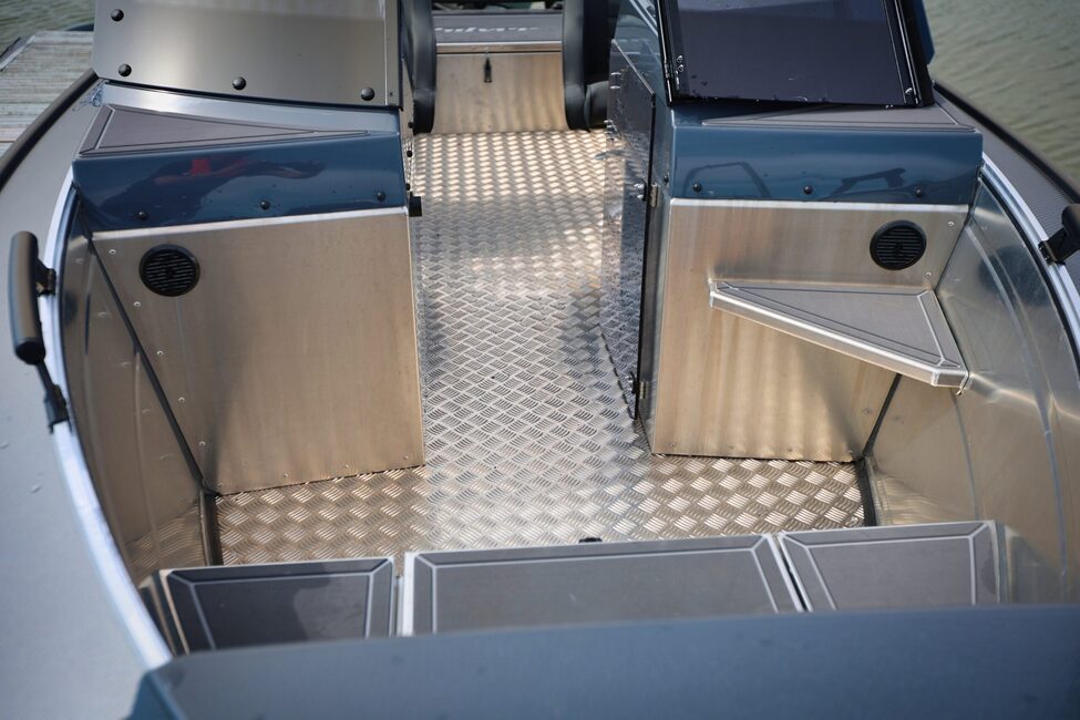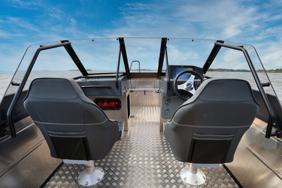 Tämä on kalastajille erinomainen ratkaisu, ja kalastuskäyttöön veneeseen saa myös lukuisia lisävarusteita: keulamoottoritelineen, vapaputkia ja live-luotaukseen optimoituja lyhyempiä sivulaseja.
