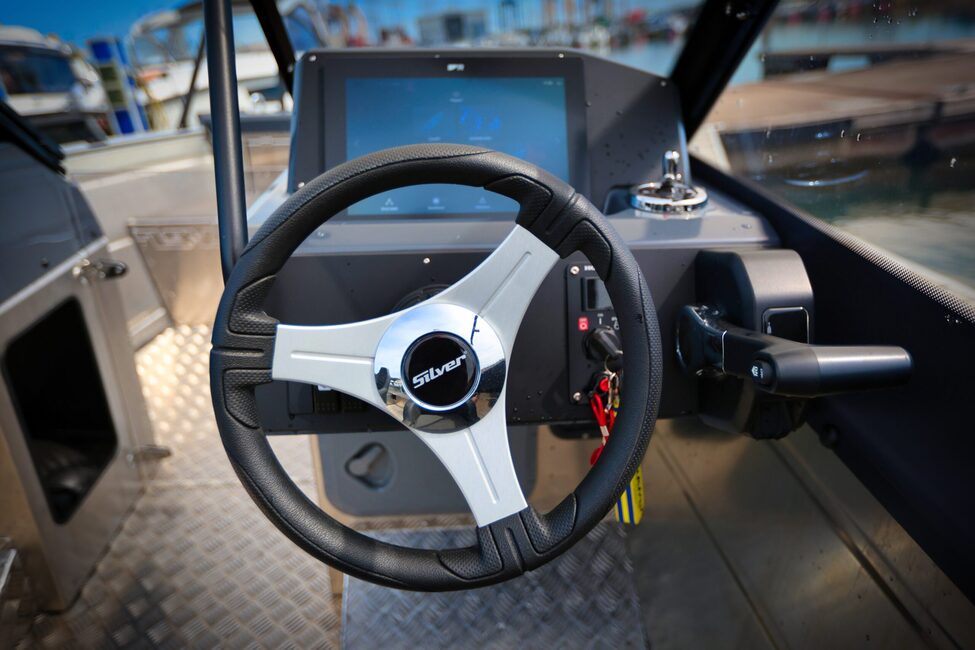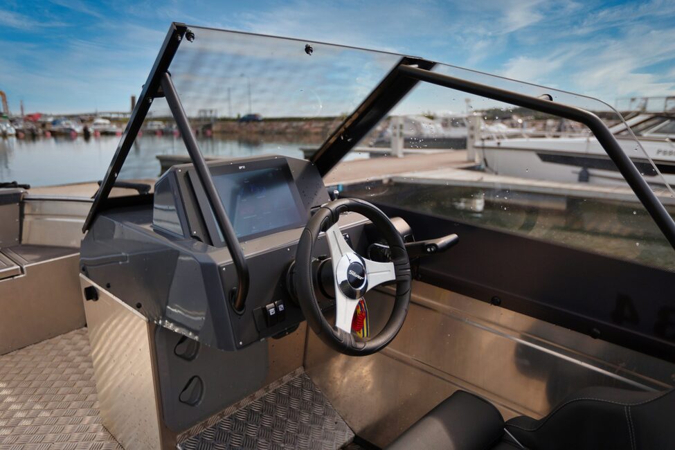 Silver Hawk BRX:n varustelista on vaikuttava jo vakiona. Mukana tulevat muun muassa Raymarine Axiom 9″ -karttaplotteri CPT-S-anturilla, hydrauliohjaus, tuulilasi karkaistua lasia, sähkökäyttöinen pilssipumppu ja 12 V -virran ulostulo.