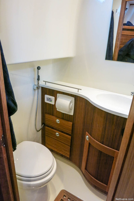 Erillisen oven takana olevassa WC:ssä on vain käsisuihku. Vuoteita on takahytissä kaksin kappalein. Toinen on tilavahko parivuode, toinen taas matalampi pistopunkka portaiden takana yhdelle.