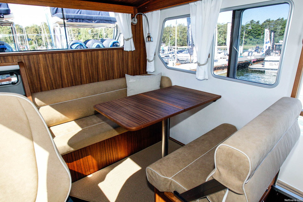 Tunnelmassa on myös aristokraattista juhlavuutta valtavan puun käytön ja tuoksun ansiosta. Monissa tyylittelyseikoissa on menty oikein vanhanaikaisella klassisella tyylillä. Veneen voisi kuvitella olevan pinnoiltaan entisöity ja tekniikaltaan modernisoitu 70-lukulainen, vaikka se on täysin uusi.