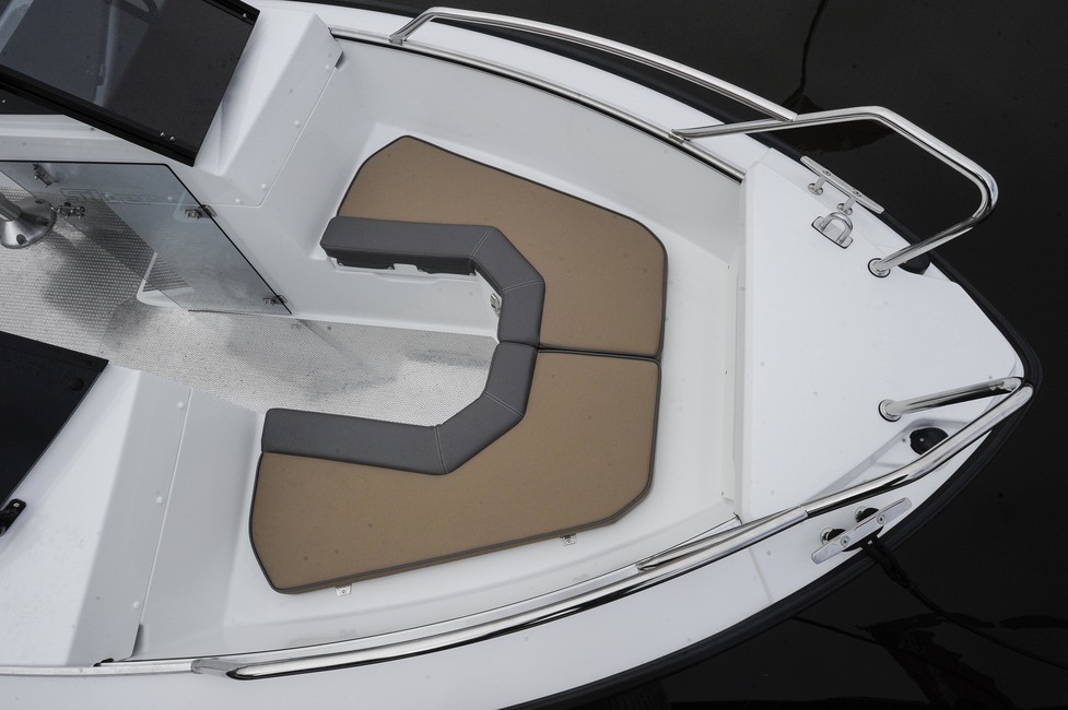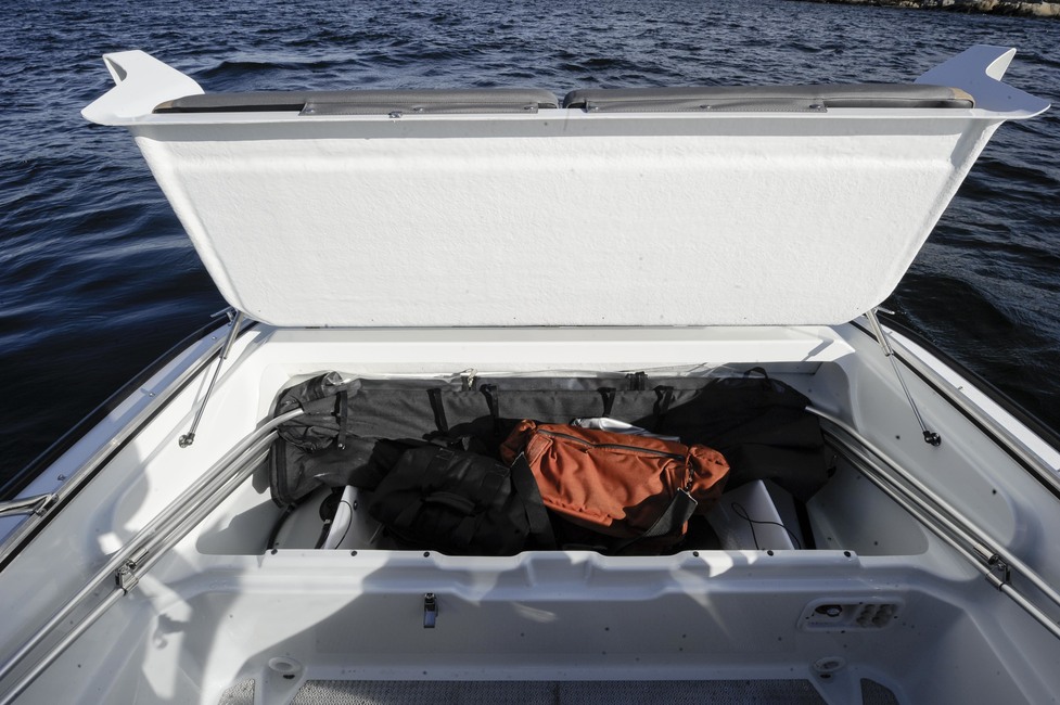 Jos käytetään integroituja sivupulpetteja Bow Rider on siksi luonnollinen valinta. Takana istutaan suojassa, edessä nautitaan tuulesta ja saadaan kaivattua säilytystilaa. Heikkona lenkkinä on edelleen ovien rakenne. Ylä-ovi on uudessa Hawkissa riittävän tukeva. Alempana on se tavanomainen heiluva pleksiläpyskä. Keulan patjasto on lisävaruste, jota kukaan tuskin jättää hankkimatta.