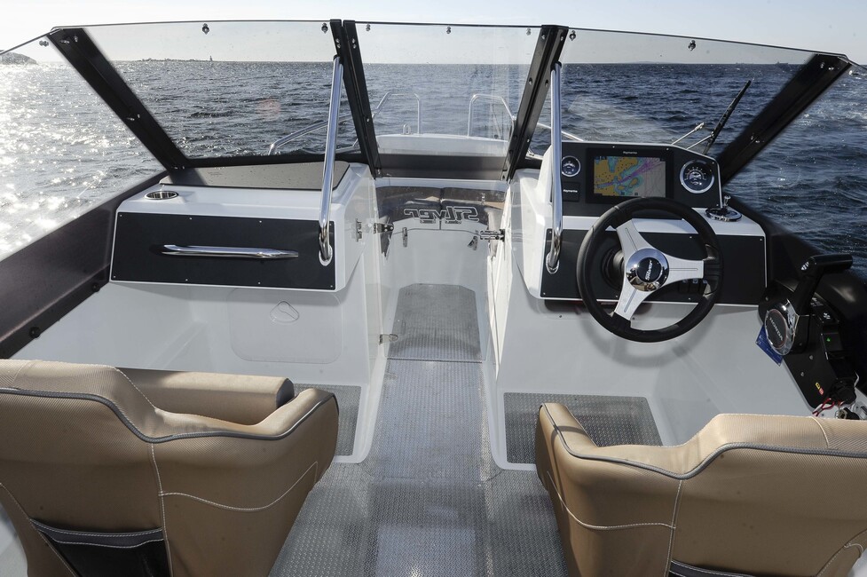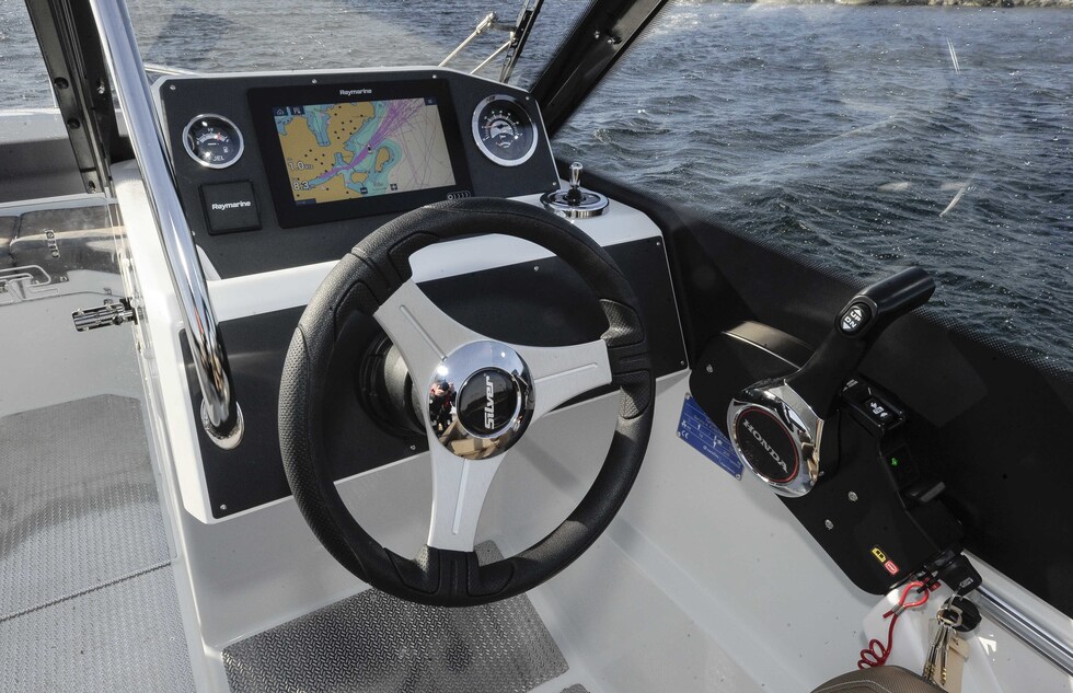 Ohjattavuus ja ergonomia toimivat uudessa haukassa kuin nakutettu jos kuljettaja itse on standardoitu eli noin 180 cm pitkä. Ratin takaa näkymää hallitsee integroitu 9 tuuman Raymarine Axiom 9RV -karttaplotteri sekä CPT-S-anturi, jotka ovat vakiovarusteita.