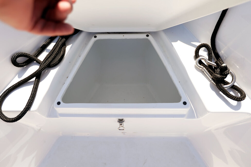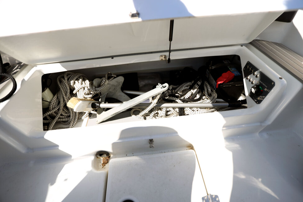 Säilytystilaa löytyy keulasta, pulpettien edestä istumapaikkojen alta ja perästä sohvan sekä offshore-istuimen välistä turkin alta. Kartturin pulpetissa on avaimella lukittava hansikaslokero.