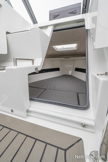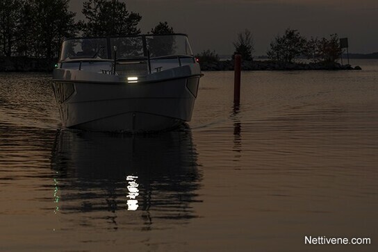 Laatutietoisen valinta, huippuluokan ajo-ominaisuuksilla ja tarkkaan harkituilla yksityiskohdilla. Viihtyisä keulakajuutta kahden hengen yöpymiseen, LED valaistuksella, kansiluukulla ja runkoikkunoilla. Avara avotila kahdella erillisistuimella ja suurella u-sohvalla tarjoaa mukavat oleskelutilat isommallekin seurueella. Tukeva ja leveä porras etukannelle ja moottorikaivo yhdessä tasossa helpottavat veneessä liikkumista.