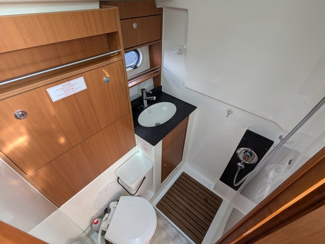 Vene on sisätiloiltaan todella avara. Keulaa ei ole suljettu omaksi kajuutakseen, joka antaa tilan tuntua merkittävästi.
