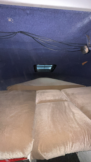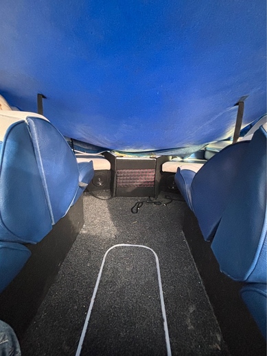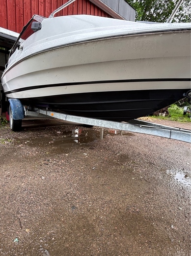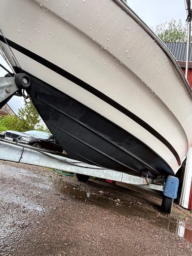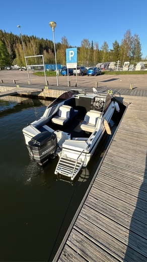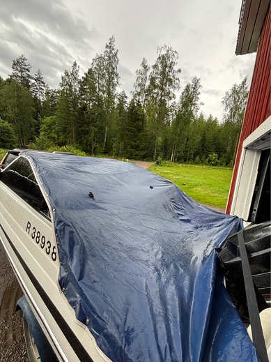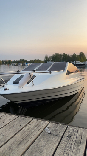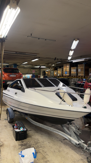 Vene ennen minua ollut ilmeisesti 2 omistajalla ja jänyt ylimääräiseksi. Oli siis maannut n.4v taivasalla. Jouduin siis uusimaan lattiavanerin kun oli mätinyt puhki. uusi vaneri kuidutettu runkoon kiini niinkuin alkuperäisenä. Seinät ja lattia verhoiltu uudella kankaalla, itse olen tämän maalannut muutama kuukausi sitten, hyttiin laitettu 2x12 subbarit ja vahvari, jotkut JBL kaijuttimet ja kiinan mankka. Eli on melko kelpo peli hyvällä kelillä.. löytyy myös satama traileri valoilla jolla itse olen liikutellut kun ollut tarve, Sähkö trimmi toimii ja nopeusmittari toimii mutta heittää n. Kympillä