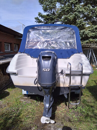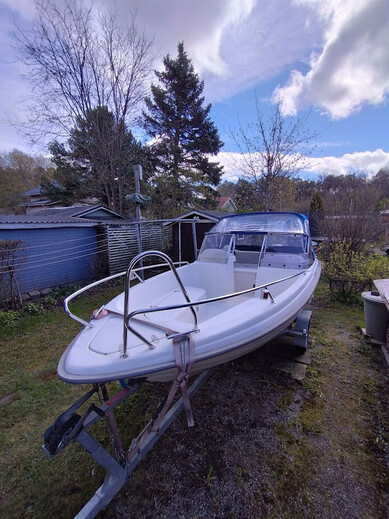 Hyväkuntoinen Bella-perämoottorivene. Moottorilla on ajettu muutaman tunnin, vuosimalli 2022.