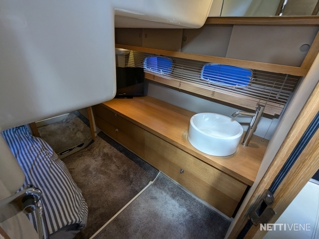 Vene on tyylikäs, siististi pidetty ja heti valmis uusille merimatkoille.