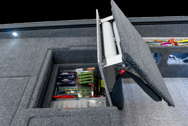 Ergonomisen konsolin ansiosta kahden kaikuluotaimen ja moottorin mittareiden asentaminen ei ole ongelma. Vene on varustettu uudella tilavalla laatikolla vavoille. Laatikot on varustettu laadukkailla ruostumattomasta teräksestä valmistettuilla heloilla. Kannet ja ohjaamo on valmistettu alumiinista. Nyt voit valita oikeat materiaalit kansillesi, vinyylin tai maton. Kaikki tämä ei vain tee kalastuksesta mukavampaa ja turvallisempaa, vaan myös pidentää merkittävästi veneen käyttöikää.