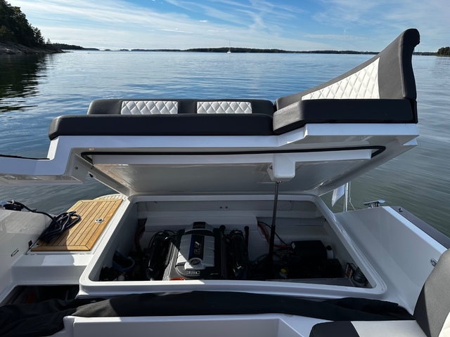 Vene on ostettu uutena keväällä 2021 ja ollut yhdellä omistajalla. Veneen talvisäilytys on ollut lämpimässä hallissa ja huollot tehty Mercruiserin huolto-ohjelman mukaan. Vene on erinomaisessa kunnossa.