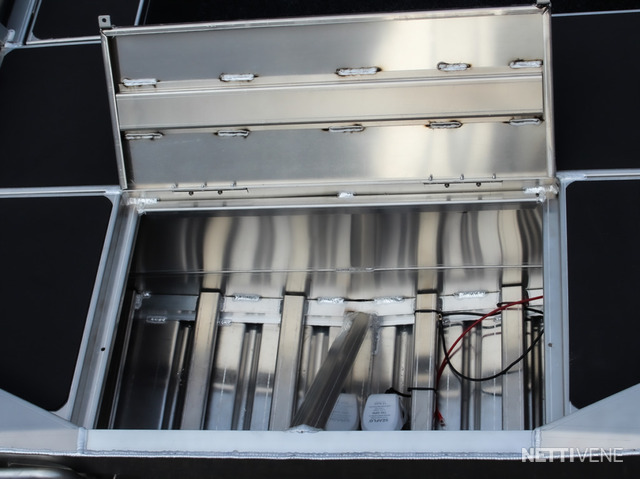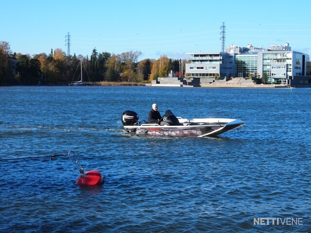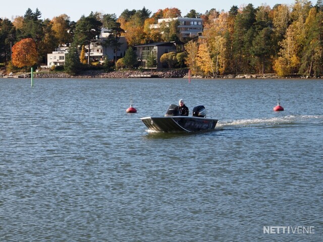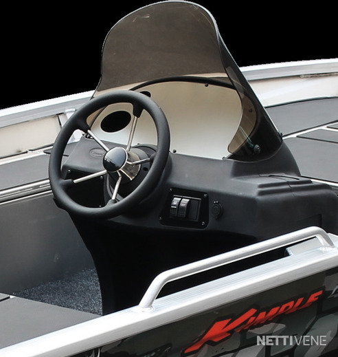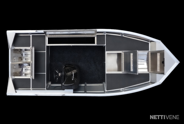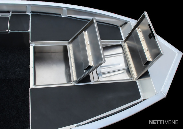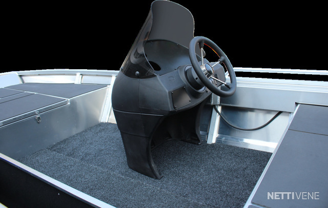 Käytännölliset Yksityiskohdat: Veneessä on tukeva ruiskumuovi pulpetti, joka auttaa hallitsemaan venettä vaivattomasti. Hitsatut kaiteet sivuilla helpottavat varusteiden kiinnitystä, ja perässä olevat uimatikkaat tekevät uimisesta helppoa ja turvallista.
