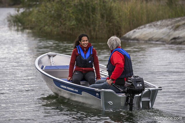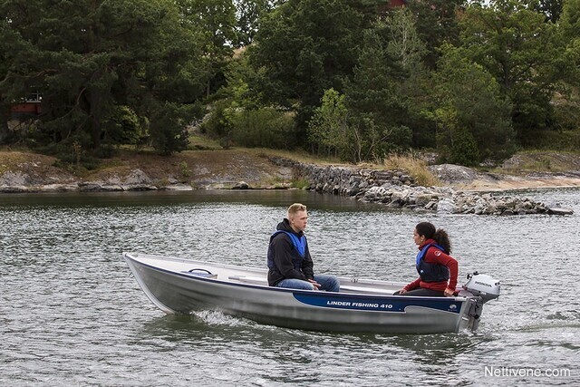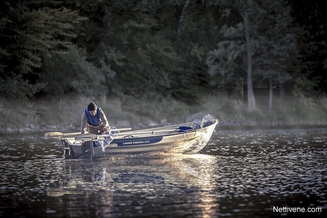 Kevyt limisaumatyyppinen soutuvene järvikäyttöön. Kevyt ja nopea nostaa vaikka auton kattotelineelle ja siirtää järveltä toiselle. Paikka pienelle perä- tai sähkömoottorille. Ympäristöä huomioiva venevalinta. Valmistettu korroosionkestävästä, korkealaatuisesta, lentokonealumiinia vastaavasta alumiinista. FISHING 410 toimitetaan varustettuna alumiiniairoilla ja pelastustikkaalla. Det Norske Veritasin hyväksymä. Securmark*-turvamerkitty.
