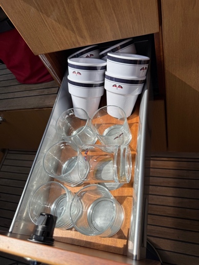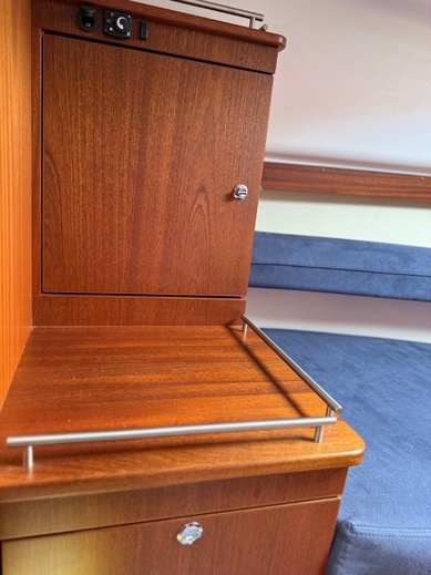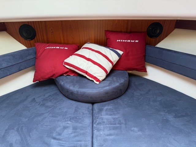 Bolsters: Hyväkuntoiset, hyvät nukkua Bow thruster Compass Cooking eq Echo sounder Fence GPS Hood Life-jacket Lights Log Map plotter Pillows: Nimbus tyynyt Refridgerator Shore power Shower: Suihku WC ja uimataso Swimming ladders Toilet: Siisti, hyvä,