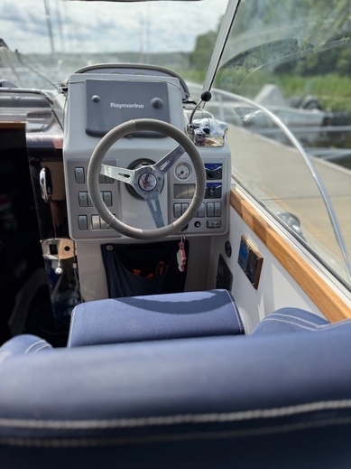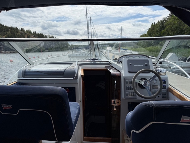 Myydään, myös vaihto (6-7 m daycruiser) ja vuokraus mahdollinen, soita ja kysy. Hyvässä kunnossa oleva laatuvene, 2010 Vuoden vene Tukholman venenäyttelyssä. Hyvä ja turvallinen yhteys - retkivene kaikkiin keleihin. Kaksi makuuhyttiä + lisävuode avotilassa, pentry avotilassa, 2 pöytävaihtoehtoa, suihku Wc, Ajettu 990 hr. Säilytetty aina sisällä, lämpimässä, Volvo Penta huollot joka vuosi. Edullinen talvisäilytys.