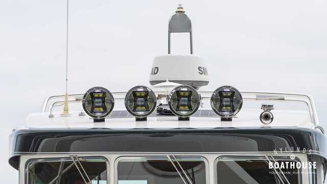 Bolsters Bow thruster Compass Cooking eq: Wallas Echo sounder Fence Lights Map plotter: SImrad NSO19", OP50, HS60 GPS Radar: Simrad Refridgerator Remote control Shore power Shower: 2x Stereo: Fusion Swimming ladders Toilet
