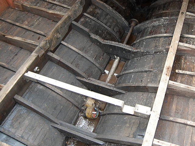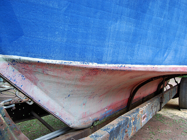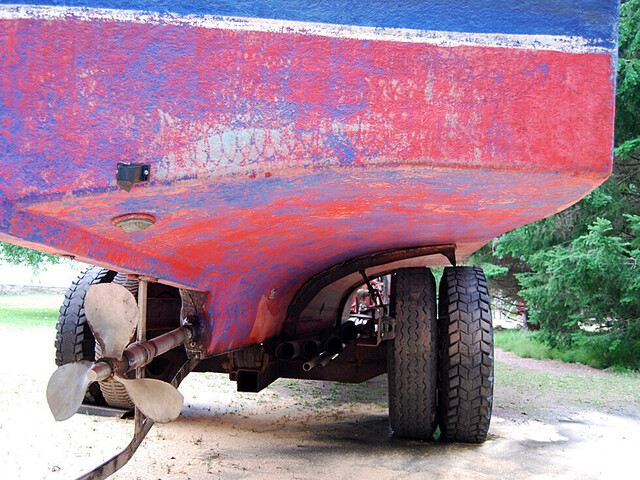 Todella jämäkkä pohja ja köli. Potkuriakseli ja potkuri jätetty vielä paikoilleen, samoin kaksi isoa polttoainesäiliötä.