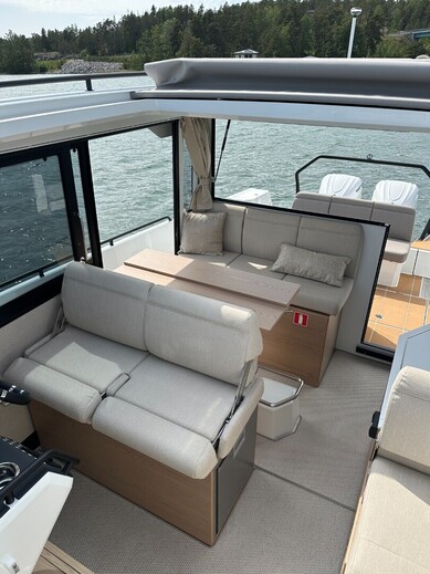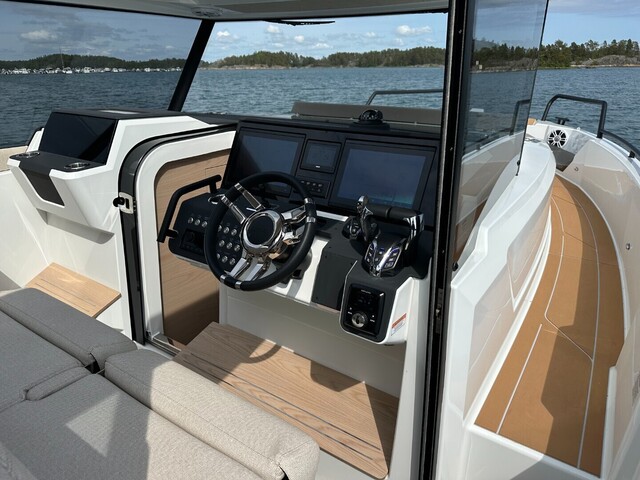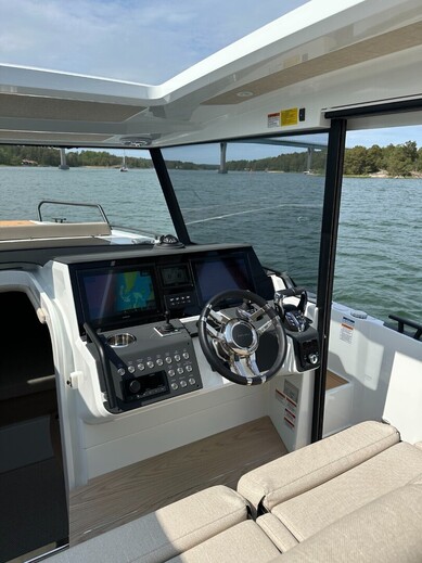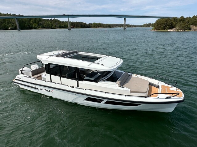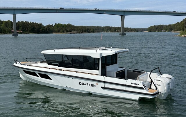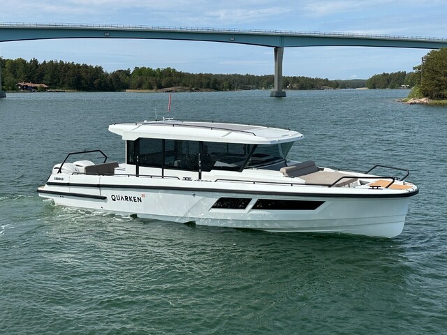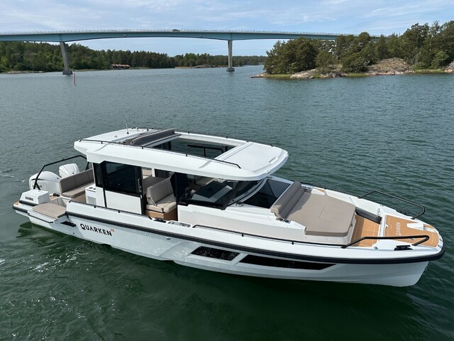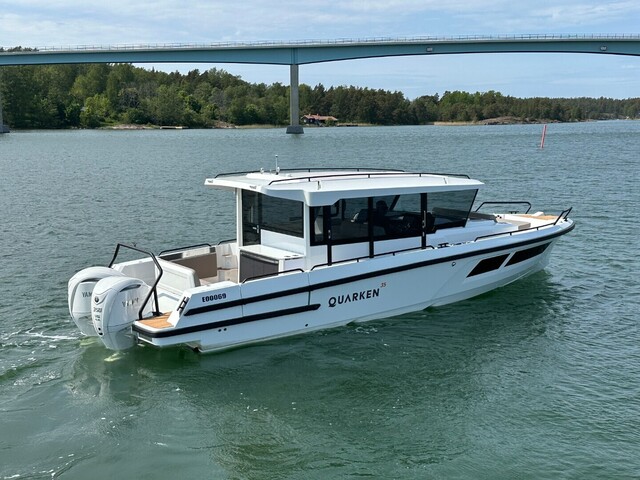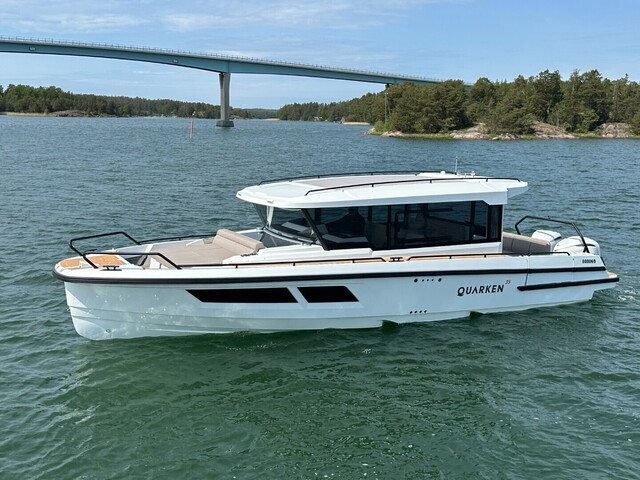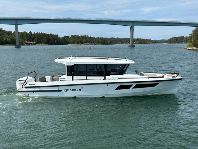 Nyt Quarken 35 Cabin nähtävillä ja koeajettavissa osoitteessa Kasnäsintie 502 Taalintehdas. Veneen varusteet: Veneen varusteet: Convenience paketti, joka sisältää langaton lataus puhelimelle kojelaudassa, Garmin 12” plotteri + kaikuanturi, Fusion soitin + 8 kaiutinta + erillinen Fusion päätevahvistin 650 wattia, Weekend paketti, joka sisältää kansisuihkun, maasähköjärjestelmä, lämminvesi varaaja 15 litraa, - keulakajuutan erillinen audiojärjestelmä Fusion + 4 kaiutinta, kaihtimet keulakajuuttaan, patja ohjaamon pöydän päälle, mooring paketti, joka sisältää 4 lepuuttajaa, kiinnitysnarut lepuuttajiin, sukat lepuuttajiin, kiinnitysköydet 6 kpl, lipputanko. Lisäksi veneessä on lisävarusteena avattava sivuikkuna, sähköinen kattoluukku, Smartdeck turkkipinnoite, keulanpatjasarja ja peite, toinen Garmin GPS Map 12" karttaplotteri, lämmitin 4 kW diesel, peruutuskamera, Yamaha autopilot ja Helmaster,...