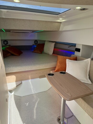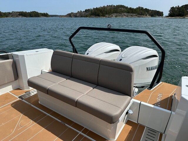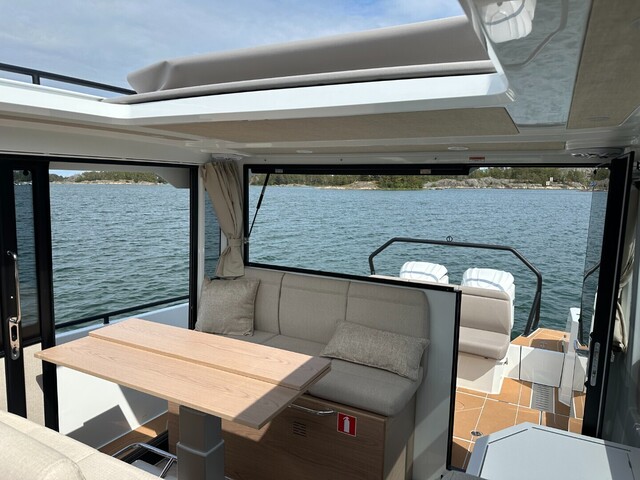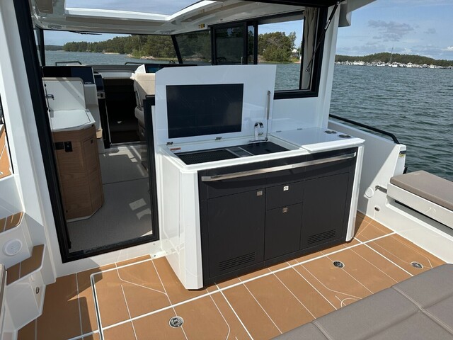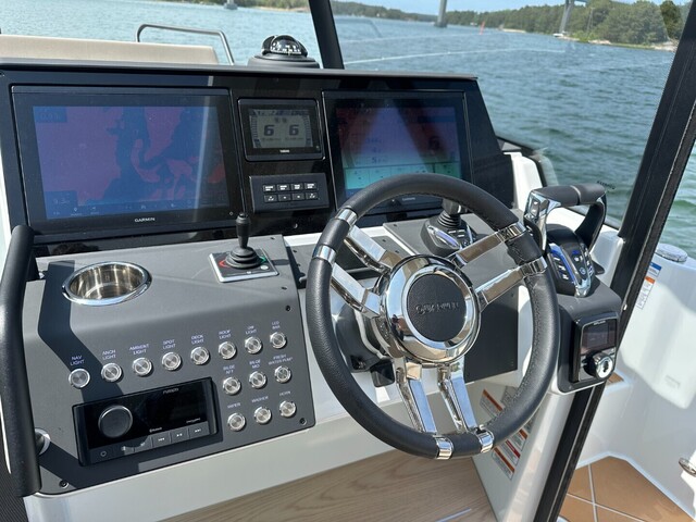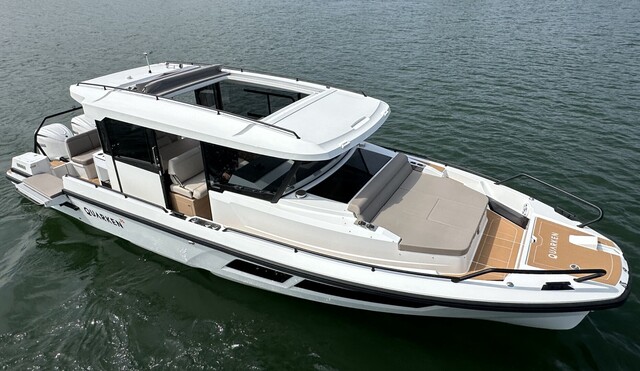 Nyt Quarken 35 Cabin nähtävillä ja koeajettavissa osoitteessa Kasnäsintie 502 Taalintehdas. Veneen varusteet: Veneen varusteet: Convenience paketti, joka sisältää langaton lataus puhelimelle kojelaudassa, Garmin 12” plotteri + kaikuanturi, Fusion soitin + 8 kaiutinta + erillinen Fusion päätevahvistin 650 wattia, Weekend paketti, joka sisältää kansisuihkun, maasähköjärjestelmä, lämminvesi varaaja 15 litraa, - keulakajuutan erillinen audiojärjestelmä Fusion + 4 kaiutinta, kaihtimet keulakajuuttaan, patja ohjaamon pöydän päälle, mooring paketti, joka sisältää 4 lepuuttajaa, kiinnitysnarut lepuuttajiin, sukat lepuuttajiin, kiinnitysköydet 6 kpl, lipputanko. Lisäksi veneessä on lisävarusteena avattava sivuikkuna, sähköinen kattoluukku, Smartdeck turkkipinnoite, keulanpatjasarja ja peite, toinen Garmin GPS Map 12" karttaplotteri, lämmitin 4 kW diesel, peruutuskamera, Yamaha autopilot ja Helmaster, kansivalot ja ulkokattovalot, vesihiihtokaari, kattokaiteet, mustat kaiteet ja pollarit, Wallas liesi diesel, ohjaamon verhosarja, Taka-avotilan wetbar, sisältää kylmäboxin, grilli wetbar sähkötoiminen. Lisäksi veneessä on vakiona jääkaappi, Side-Power portaaton keulapotkuri. Tämä vene on myynnissä ja heti valmis luovutukseen. Tervetuloa tutustumaan ja kaupoille!