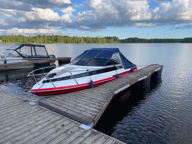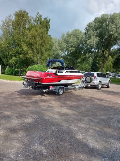 Löytyy trailerikin mutta kantavuudeltaan aika tiukilla tolle veneelle. Respo 1500. Voidaan myydä lisähinnasta mukaan jos ei poliisin vaakat jännitä. Tai erikseen katsastettuna 2000€.