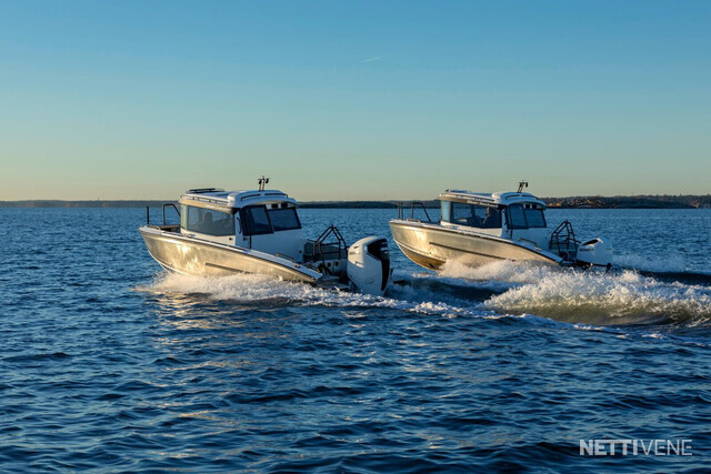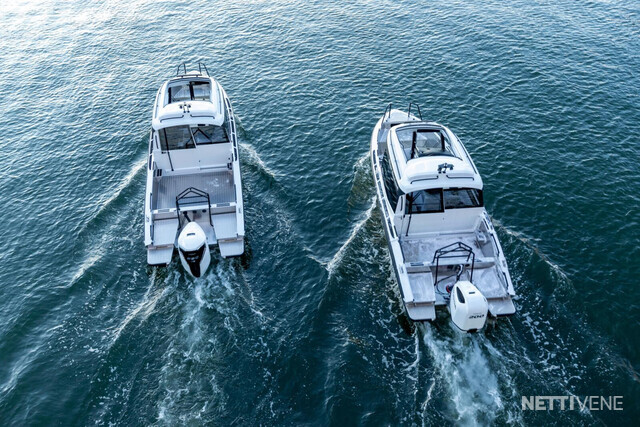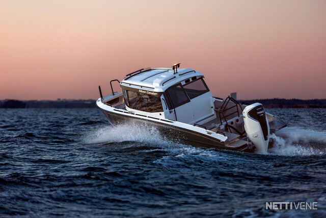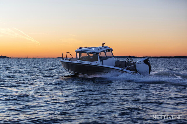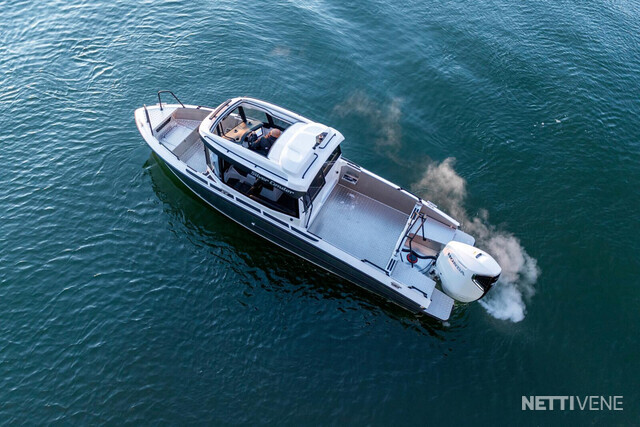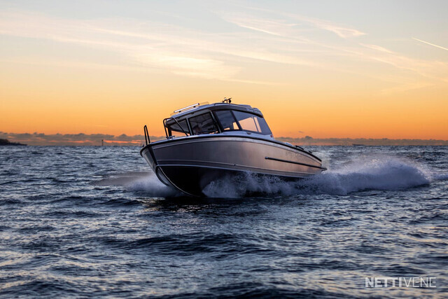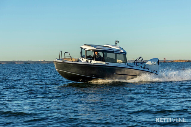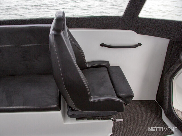 Veneen tyylikäs lasikuituhytti on ergonomisesti muotoiltu siten, että kuljettaja istuu hieman muita korkeammalla veneen keskellä ja kaikki hallintalaitteet ovat helposti hänen käytettävissään. Kuljettajan sekä apukuljettajan istuimet ovat saatavilla myös ilmajousituksella. Hytti tarjoaa väljät tilat mukavine istumapaikkoineen, esteettömän näkyvyyden joka suuntaan, suuren avattavan kattoluukun, helpon läpikuljettavuuden keulasta perään, sekä hyvän seisomakorkeuden - ominaisuuksia, jotka tekevät veneen käytöstä vaivatonta ja mukavaa kaikissa olosuhteissa. Leveä takaliukuovi helpottaa veneessä liikkumista ja tavaroiden lastaamista hyttiin. Teknisten ratkaisujen ansiosta ovet toimivat moitteettomasti myös pakkasolosuhteissa.