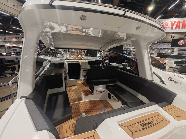 Silver Raptor ST on katettu versio suositusta Raptor DC -veneestä. ja se on suunniteltu etenkin retkeily ja matkakäyttöön. Korkeampi tuulilasiprofiili. madallettu oleskelutilan lattia ja katon optimaalinen rakenne varmistavat hyvän seisomakorkeuden myös katoksen alla. Katon kankainen osa on avattavissa. jolloin auringonpaisteesta voi vaivatta nauttia satamassa ollessa. Makuupaikat neljälle ja todella laaja vakiovarustelu. Erinomainen ajettavuus ja matkustusmukavuus.