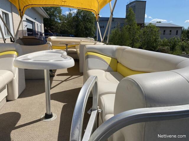 Sun Tracker Party Barge 22 on ponttonivene, missä on muhkeakokoinen tasainen kansi varustettuna nykyajan mukavuuksilla. Vene soveltuu vetouisteluun ja heittokalastukseen mutta myös maisemaristeilyyn, kokouksien, tai vaikkapa syntymäpäivien viettopaikaksi. Veneen varusteisiin kuuluu mm. karttaplotteri, kaikuluotain, radio, cd-soitin, kylmäboksi ja veneen takaosassa uimatikkaat sekä ylös nouseva aurinkovarjo. Veneen takaosan aurinkokansi nousee ylös ja alta nousee pukeutumistila, johon on sijoitettu myös kemiallinen WC. Veneeseen pääsee myös pyörätuolilla. Erikoisuutena Party Bargessa on muhkeat nahkasohvat ja niiden eteen asennettavat tarjoilupöydät.