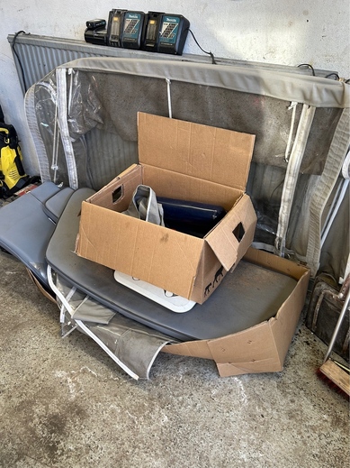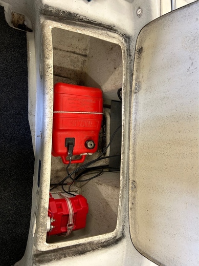 2x irtonaiset polttoainetankit, 2x akut ja paljon muuta veneily tarvikkeita mukaan.