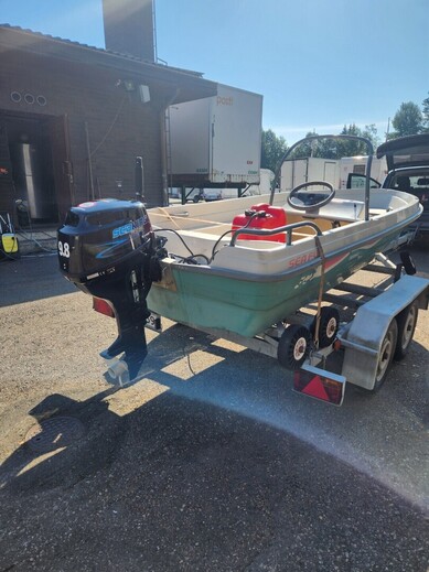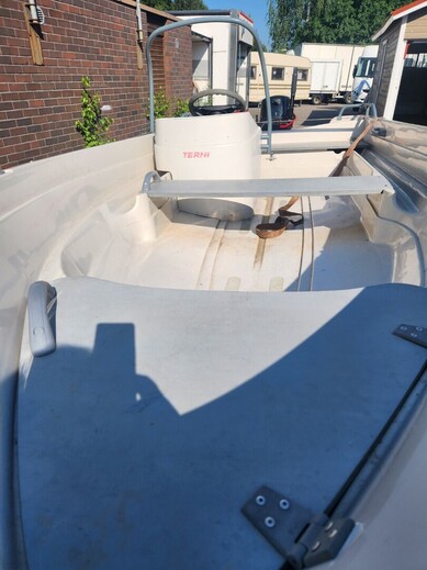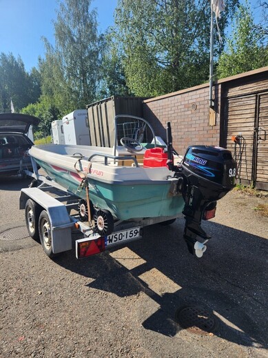 Tarjolla hyväkuntoinen Terhi tämä liikkuu hyvin myös airoilla. UUsi mootori perässä. Nyt toimii tappiohjauksella mutta ohjauslaitteet on paikallaan.