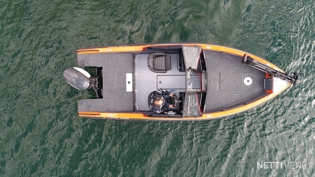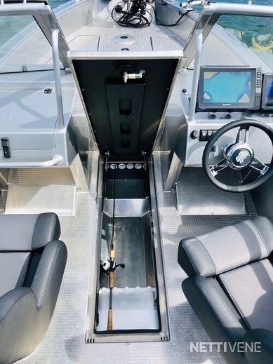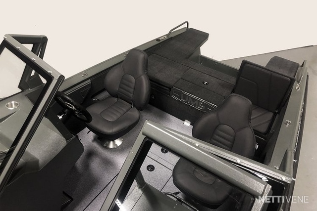Fishing mallistossa veneen sisätilat voi speksata aukiharjatulla matolla, vinyylillä tai alumiinilla. Suosittelemme maton ja vinyylin yhdistelmää. Vakiona kyljet saa teipattuna mustaksi ja kannen mustalla raptor -maalilla, puhtaan alumiinin lisäksi. Lisävarusteena nanopassivoitu...
