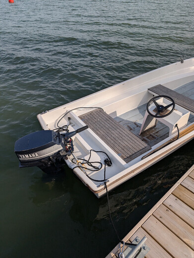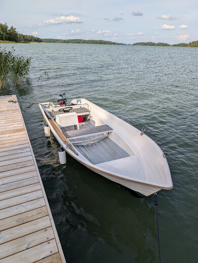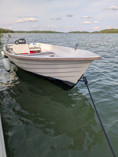 Hyväkuntoinen pieni ja kevyt pulpettivene.