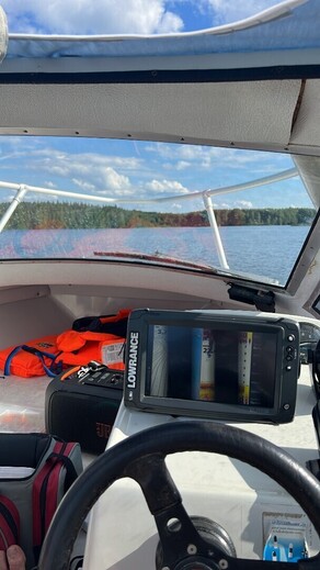 Uisteluvarustus: Sisältää takilan, targan ja luotaimen lowrance elite Ti 9