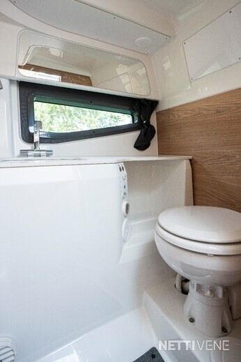 Veneen varsinainen sydän on avara avotila, jossa mahtuu seurustelemaan mukavasti jopa kahdeksan henkeä. Paapuurin puolella on pentteri, joka on varustettu liedellä, jääkaapilla ja altaalla sekä hyvillä säilytystiloilla. Ruuanlaiton ajaksi pentterin kansi avautuu aputasoksi. Veneen avotilan seurustelualue kasvaa merkittävästi, kun kuljettajan tuplapenkin selkänoja käännetään eteen. Takaosan sohvan selkänoja puolestaan kääntyy taaksepäin laajentaen istuimen aurinkotasoksi.