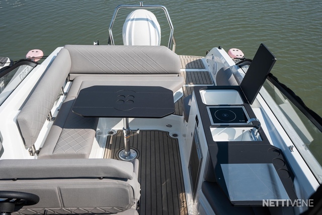 Veneen varsinainen sydän on avara avotila, jossa mahtuu seurustelemaan mukavasti jopa kahdeksan henkeä. Paapuurin puolella on pentteri, joka on varustettu liedellä, jääkaapilla ja altaalla sekä hyvillä säilytystiloilla. Ruuanlaiton ajaksi pentterin kansi avautuu aputasoksi. Veneen avotilan seurustelualue kasvaa merkittävästi, kun kuljettajan tuplapenkin selkänoja käännetään eteen. Takaosan sohvan selkänoja puolestaan kääntyy taaksepäin laajentaen istuimen aurinkotasoksi.