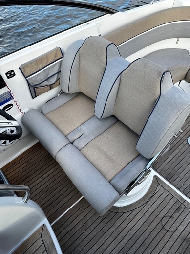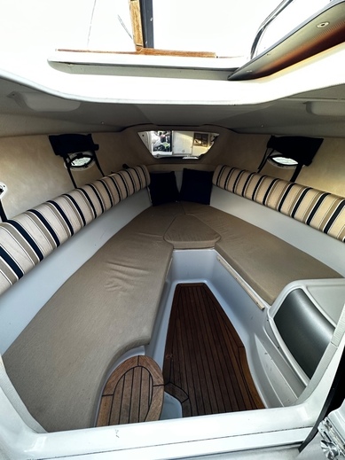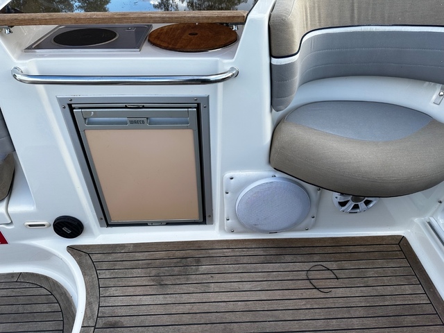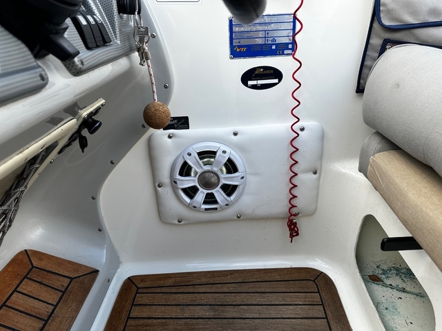 Kajuutassa erillinen wc-istuin, asennettu fusionin järeämmän pään poppivehkeet subbareineen. (n. 2000€). Järeämpi hupiakku vaihdettu kesällä 2023.