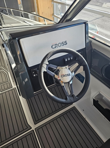 Cross 75 BR on Cross-malliston suurin vene. Kokonsa ansiosta se soveltuu erinomaisesti myös avomerelle, eikä haastavatkaan olosuhteet tuota ongelmia. Veneen kyytiin mahtuu jopa yhdeksän matkustajaa monipuolisen avotilan ansiosta. Suojaa antaa tyylikkäällä rosterisella karmilla varustettu tuulilasi. Veneessä on helppoa ja turvallista liikkua selkeiden kulkureittien ja askelmien ansiosta. Esimerkiksi iso tasainen peräkansi ja uimatasot ovat apunasi rantautumisessa. Lisävarusteena saatava vesihiihtokaari toimii erinomaisesti vesiurheilussa, ja on tukena turvallisessa rantautumisessa. Yhdessä Yamaha F300 -moottorin kanssa huippunopeus nousee lähes 50 solmuun, joten nopeutta tästä veneestä ei puutu.