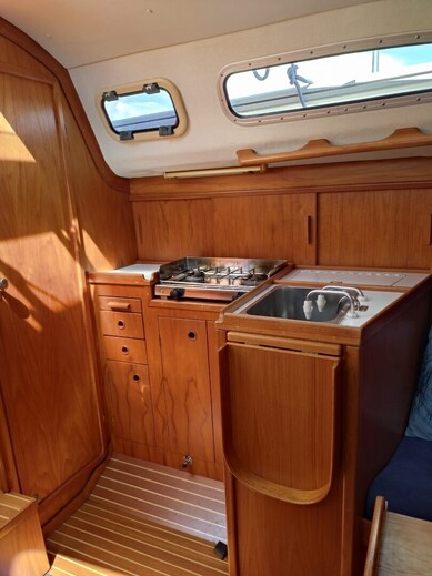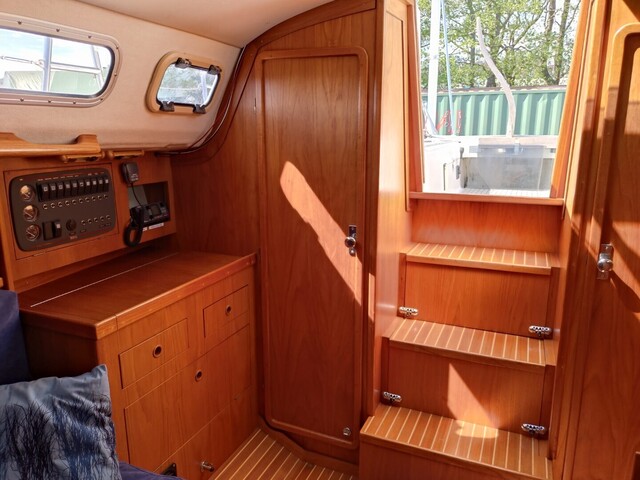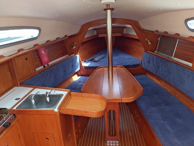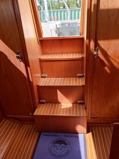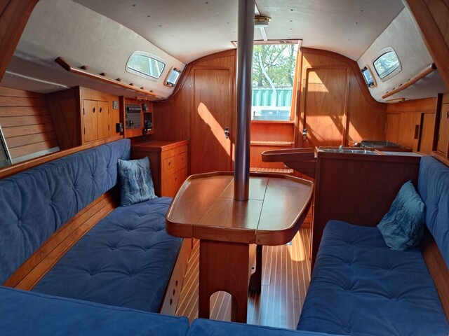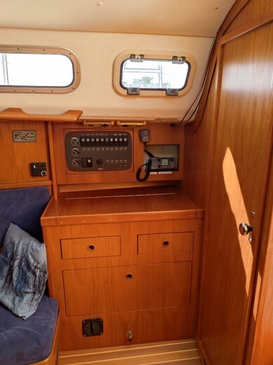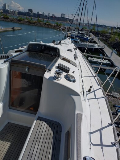 Autopilot: Raymarine ST2000+ Bolsters Compass: Suunto Cooking eq Echo sounder: Raytheon ST40 Fence GPS: Raymarine E90/w hybrid touch Inspected: Luokka 2, Rannikko Lights Log: Raytheon ST40 Map plotter: Raymarine E90/w hybrid touch Pillows Radar: Raymarine E90/w hybrid touch Refridgerator Shore power: Akkujen latauksella Swimming ladders Toilet: Pesualtaalla VHF: Navicom RT 650 AIS