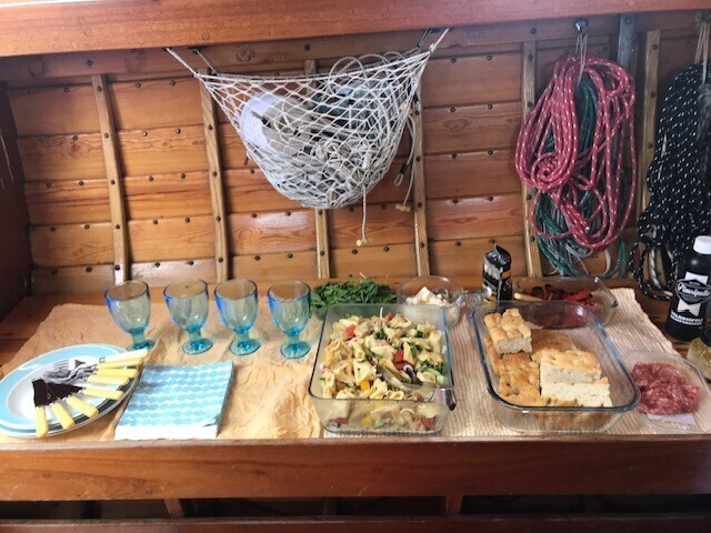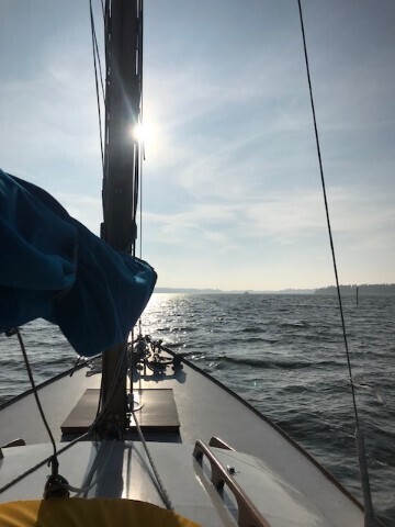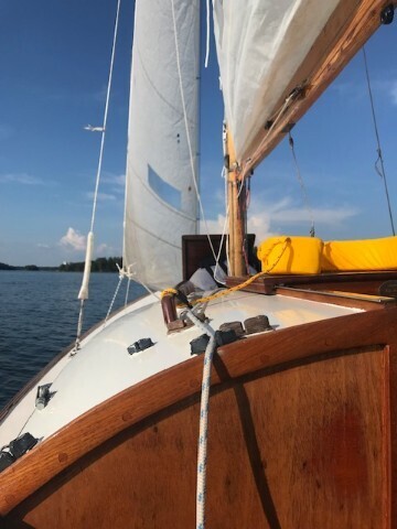 Yksi purjekerta, isopurje, fokka ja alkuperäinen spinnu.