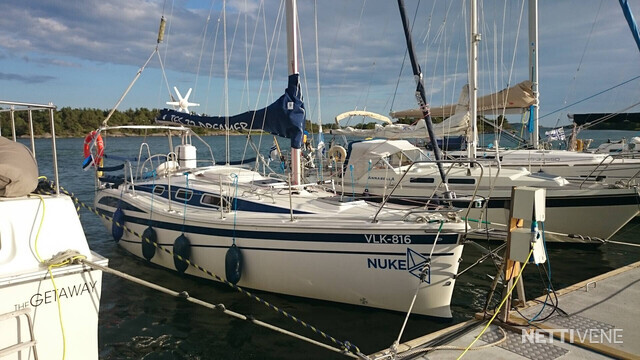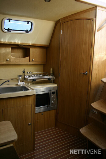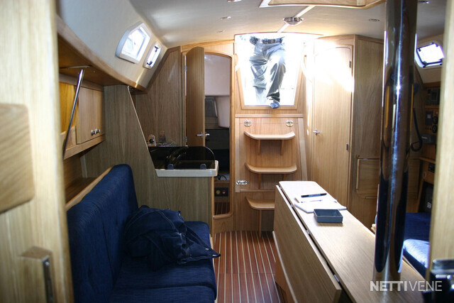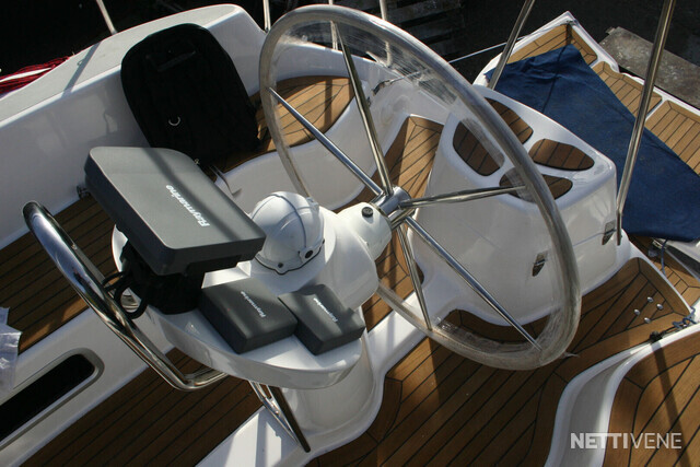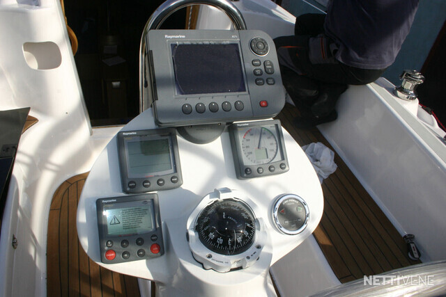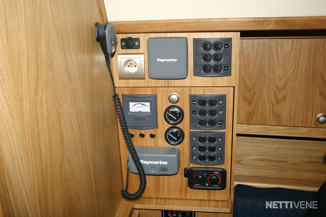 Autopilot: Raymarine SPX10 Bolsters Bow thruster Compass: Magnetic + electronic Cooking eq: gas stove, microwave Echo sounder: Raymarine ST60 Plus Tridata system Fence GPS Inspected Life-jacket: for whole crew of 8 Lights Log: Raymarine ST60 Plus Tridata system Map plotter: Raymarine A57D Plotter Refridgerator Remote control Safety boat: Viking Life-Saving raft RescYou Pro 8UKSL/ISO 9650-1 "ISO PACK II for 8 people, self righting in container Shore power: with RCD, consumption meter, galvanic insulator Shower: at swimming platform and in WC Stereo: Kramer Swimming ladders Toilet: WC with manual pump. Storage tank with electric pump. Switchable: Tank/out board VHF: Raymarine Ray 49E, main antenna and spare antenna on top of the mast