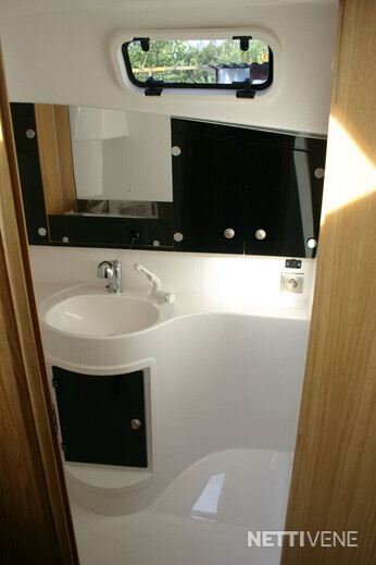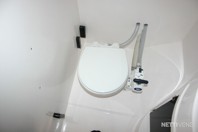 Toilet: WC with manual pump. Storage tank with electric pump. Switchable: Tank/out board
