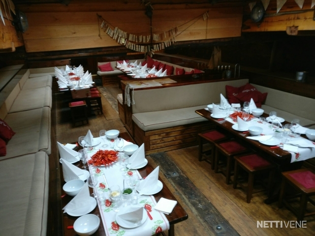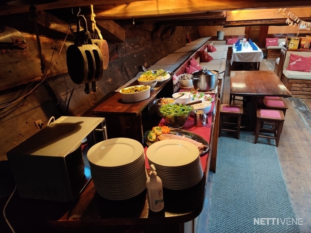 Bolsters Compass Echo sounder Fence GPS Inspected Life-jacket Lights Log Map plotter Pillows Radar Refridgerator Safety boat Shore power Swimming ladders Toilet: 2 kpl VHF