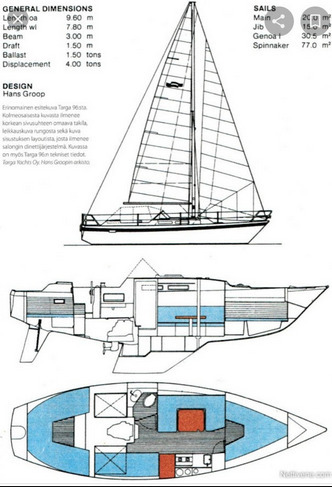 Myydään Hans Groopin suunnittelema matkapurjevene Targa 96.