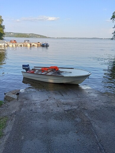 Myynnissä Moottori vene. Hyvä kalastukseen. Vakaa Leveä runkoinen. 20hv archimedes Penta perämoottori.