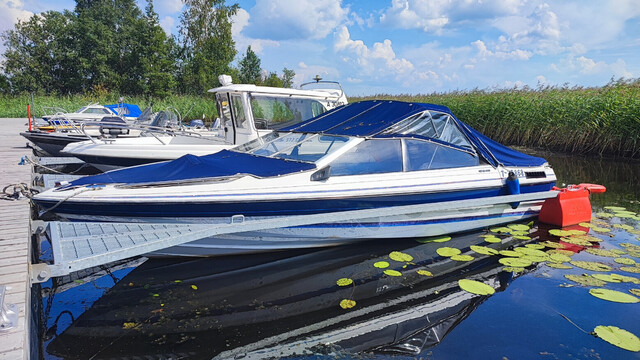 Ajossa oleva monikäyttöinen ja tilava Bayliner OMC Cobra vetolaitteella.