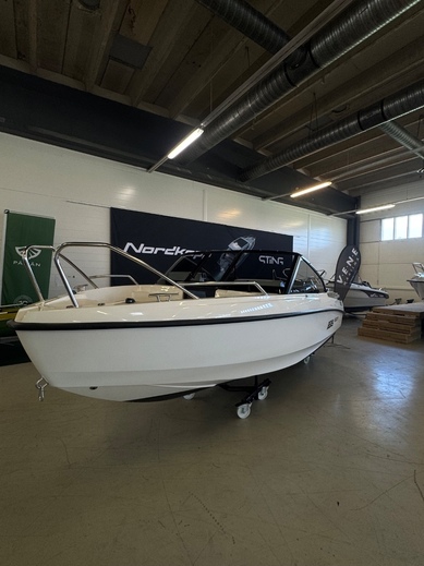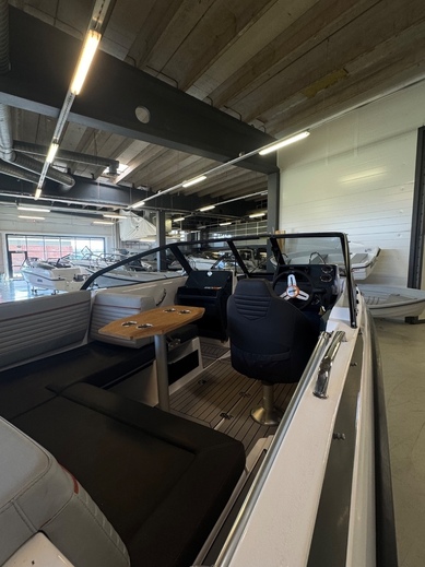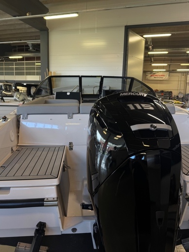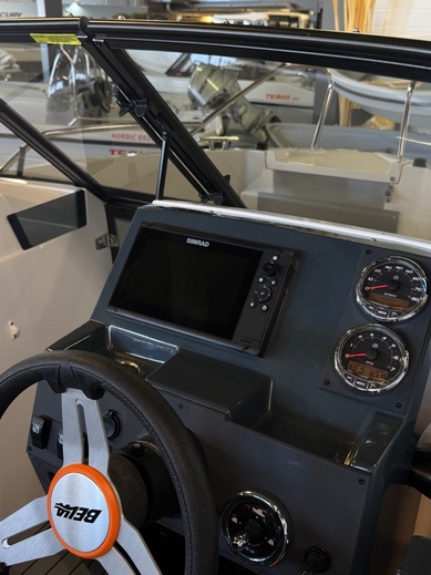 Tästä hyvin varusteltu bella 550BR. Veneessä on kattava varustelu mm trimmilevyt, pöytä takatilaan, patjasarja edessä, satamapeite ja ajokuomu.