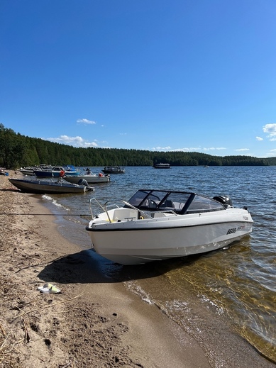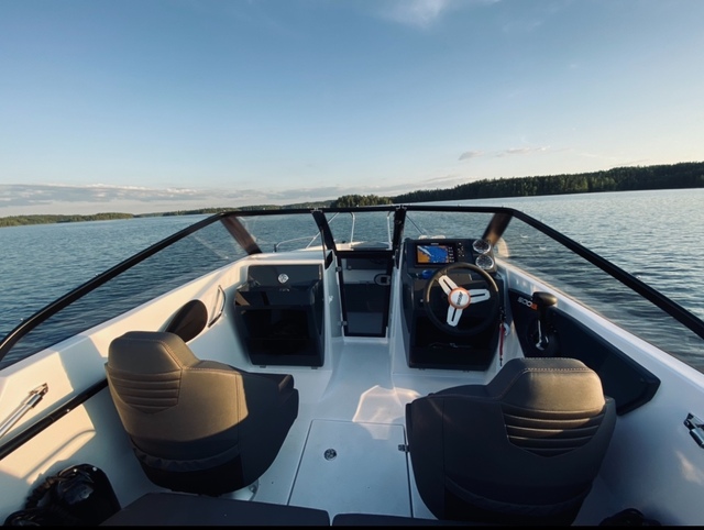 Tästä siis huoleton ja hyvä varma vene kaikkine varusteineen, jolla teet niin pienet kuin isommat retket sekä vedät helposti esim. vesisuksia tai wakeboardia. Mallille tyypillisesti nousee hyvin plaaniin ja kulkee tosi nätisti, sekä on helppo ja vakaa ajettava.