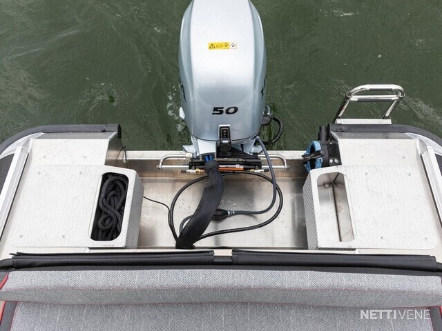 - Veneessä on hydrauliohjaus vakiona. sadevesityhjentyvä avotila. helposti puhtaana pidettävät tyhjennysreiät laidoissa sekä mittaristopaneliin asennettu laadukas Raymarine Axiom+ -karttaplotteri.
