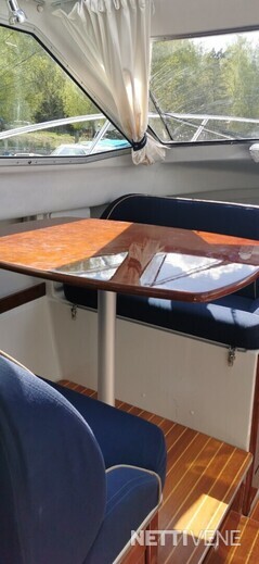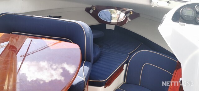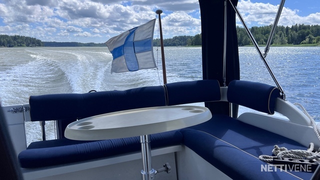 Veneen takaosassa oleva sohvaryhmä pöytineen tuo lisää oleskelutilaa veneeseen kauniina päivänä. Hiukan huonommalla kelillä takaosan katokseen voi lisätä ikkunaseinät, jolloin siellä taas viihtyy. Umpitilassa on iso kattoluukku, joka tuo raikasta ilmaa sisään, luukusta voi kuskikin...