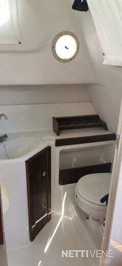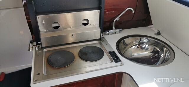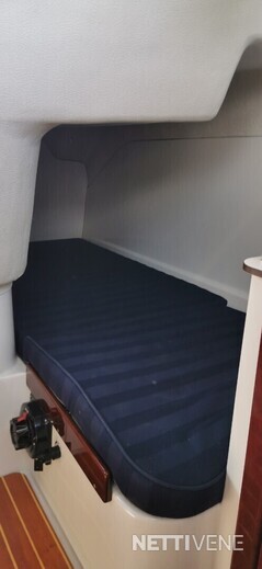 Veneessä nukkumapaikat 3lle aikuiselle ja 1 pienelle lapselle (keulasänky, pistopunkka takana ja istuinryhmästä tehtävissä myös sänky pienelle lapselle). Oma vesi WC, jääkappi, keittolevyt ja pesuallas nostavat asumismukavuutta yönyli -reissulla..